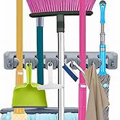 Home- It Mop and Broom Holder, 5 Position with 6 Hooks Garage Storage Holds up to 11 Tools, Storage Solutions for Broom Holders, Garage Storage Systems Broom Organizer for Garage Shelving Ideas