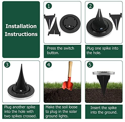 【Easy to install & Charge before use】- It is recommended to place the ground light in the sun for 6-8 hours before use,as it may cause natural discharge during transportation.Just need to cross the two spikes and install the holder to the hole of the garden lights then finish the installation.Position your outdoor lights in a location where it can be exposed to maximum sunlight during the day.