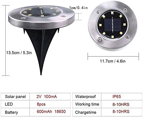 IP65 Waterproof: IP65 waterproof and high strength ABS make it suitable for outdoor use. It can effectively isolate the water and mist. The solar ground lights can work under kinds of weather, like rain, snow, frost, or sleet.