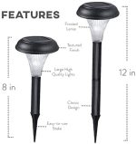 Brightest Solar Lights Beautiful Design Looks Good in Any Landscape Premium Value for our 10 Pack No Unattractive Wires Large Lights for Extra Brightness Great for Outdoor Barbecues, Weddings, & Garden Parties Quick and Easy to Install in Under 10 Minutes Two Height Options— 12 Inches or 8 Inches Tall Pre-Installed Energy Efficient Batteries Save on Your Electricity Bill Lights Automatically Turn On At Night and Turn Off During the Day LED Lights Lasts 30,000+ Hours Our NiMH Batteries Last Longer than Other Stake Light Batteries Trusted by Thousands of Happy Customers Designed in the USA Double-Waterproof Seal to Withstand All Weather Conditions Made with Premium Quality Polycrystalline Solar Panels Just the Right Size for Maximum Light Measures 12 Inches Above the Ground and 4.5 Inches in Diameter Top Performance Lights that Charge even on Cloudy and Snowy Days Completely Waterproof Shines Bright Throughout the Night in the Summertime We Provide Amazing 24 Hour Customer Support— 7 Days a Week— 365 Days a Year
