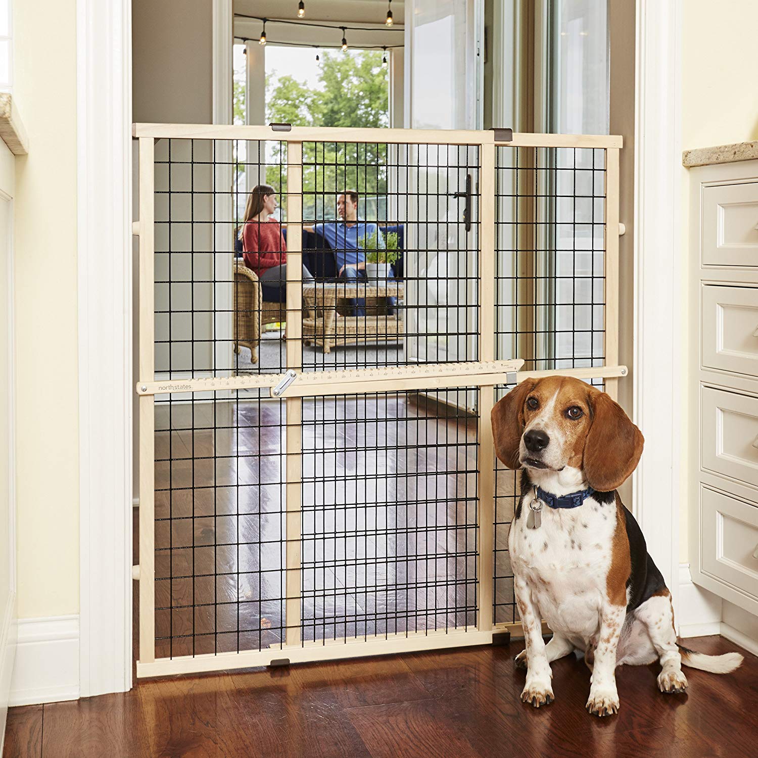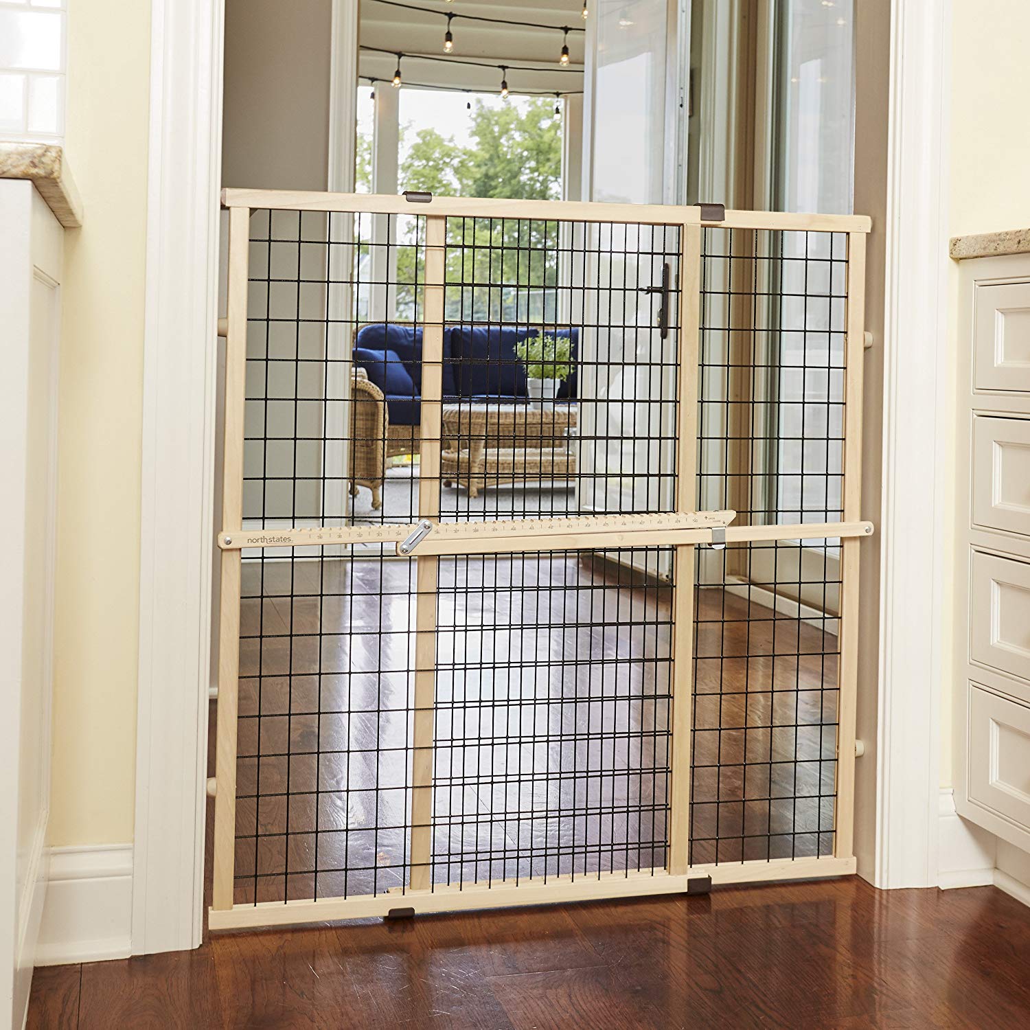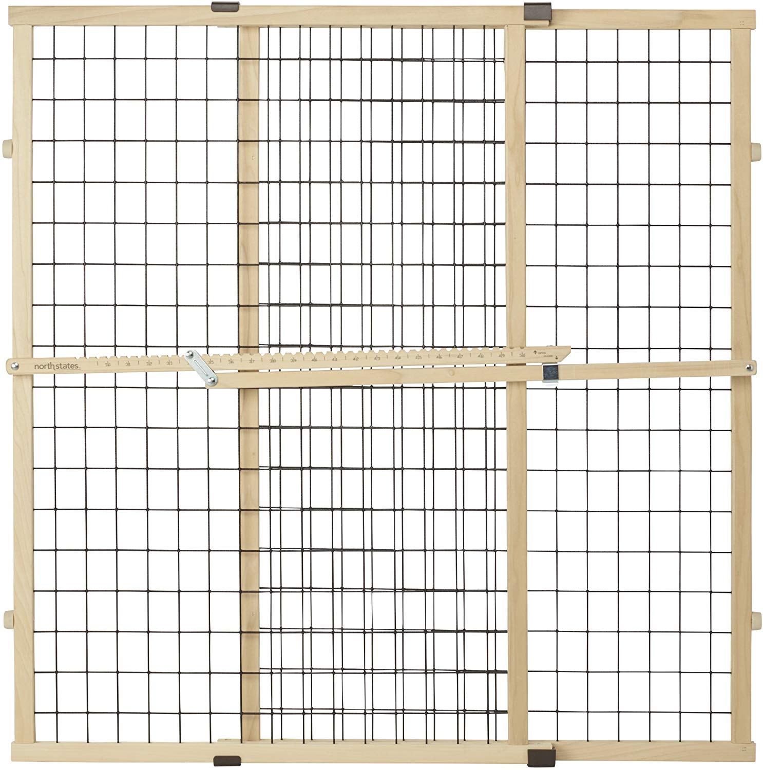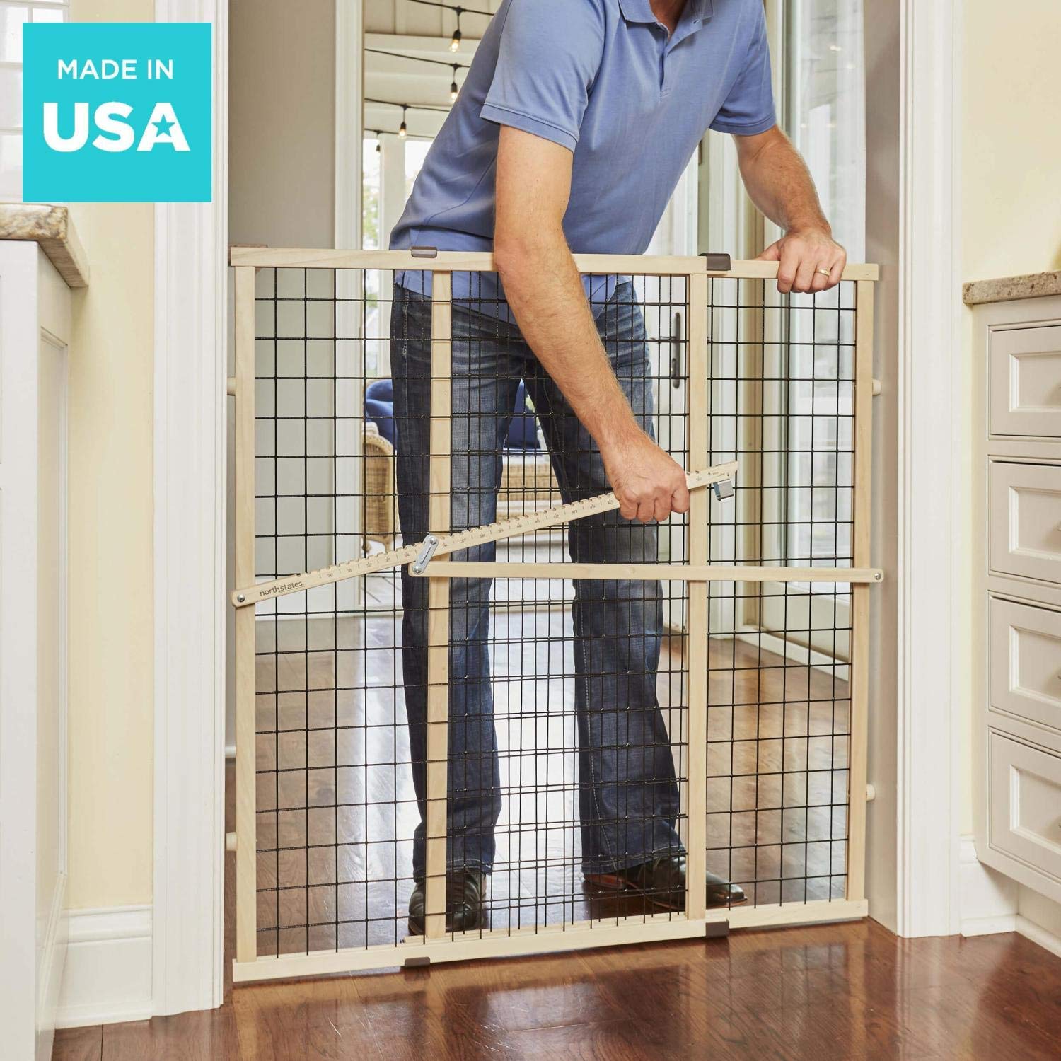 The Extra Tall & Wide Wire Mesh Petgate is designed for small, medium or large breeds. Standing 37″ high, the added height of this gate is the perfect solution for those pets that like to jump. It pressure mounts easily and securely without the use of hardware. Simply position and lock in place. The sturdy American sustainable wood frame surrounds rigid vinyl-coated wire mesh panels that adjust to fit openings from 29.5 to 48 inches wide. The side bumpers are made of rubber and will not mark walls. The bottom two bumpers are higher than most and will accommodate up to 4″ molding. Want to use this gate with your child? No problem. This gate is certified by the Juvenile Products Manufacturers Association (JPMA) for use with children ages 6 to 24 months of age. Safety and containment all wrapped up in one gate – how simple.