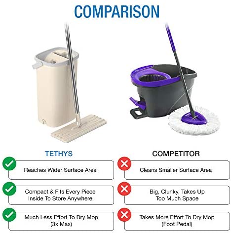 280° SWIVEL HEAD- Sleek design extends reach beneath and around furniture. Removes the dirt and grime from those hard to reach places! A 280° rotatable mop head gives access to various angles of cleaning and puts you at an advantage over the crumbs and dust on your kitchen floor.
