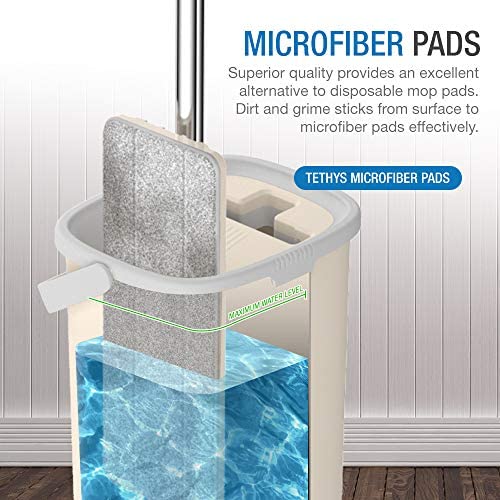QUALITY MICROFIBER PAD- Two reusable microfiber pads give you the chance to clean over and over again with the benefit of them being machine washable. Works with: Stone, Tiles, Laminate, Hard Wood, Vinyl, Bamboo, Cement, Baseboards, and Drywall. Our Mop can work with nearly any hard surface and help you achieve a shiny, new, and fresh feel to your kitchen or other hard surfaced floors.
