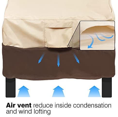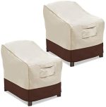 MAXIMUM PROTECTION: Featuring Heavy Duty 100% 600D Oxford fabric, this Valige patio cover is made to protect your patio furniture from outdoor elements like sun, dirt, rain, snow.Our 2 Pack Beige & Brown Large chair cover measures 35″W x 38″D x31″H. Please measure your chair dimensions before purchasing.